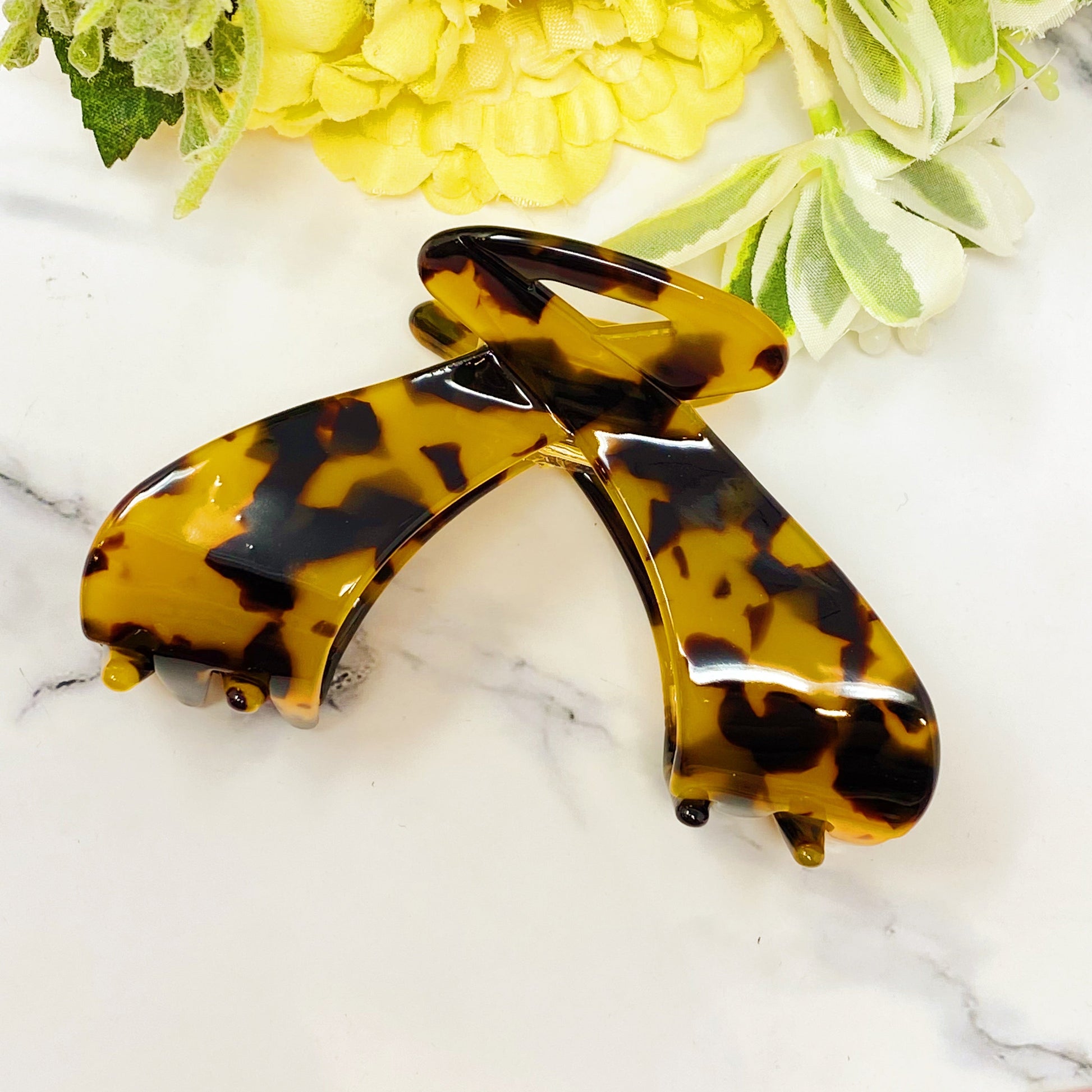 Acrylic hair clip in pretty curved design.